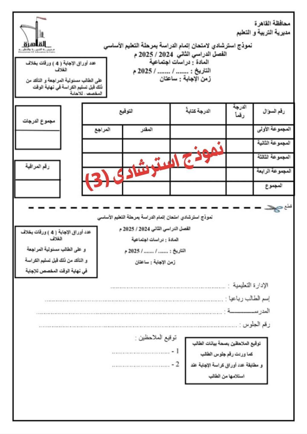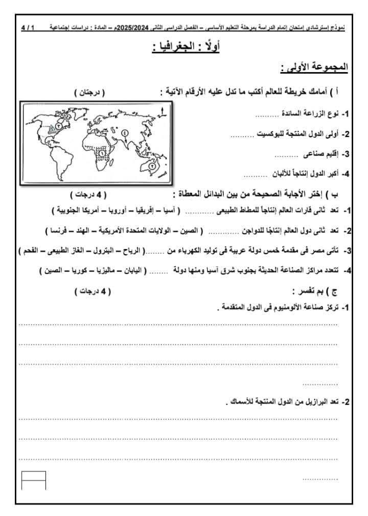 - امتحانات تجريبية دراسات اجتماعية ثالثة إعدادي