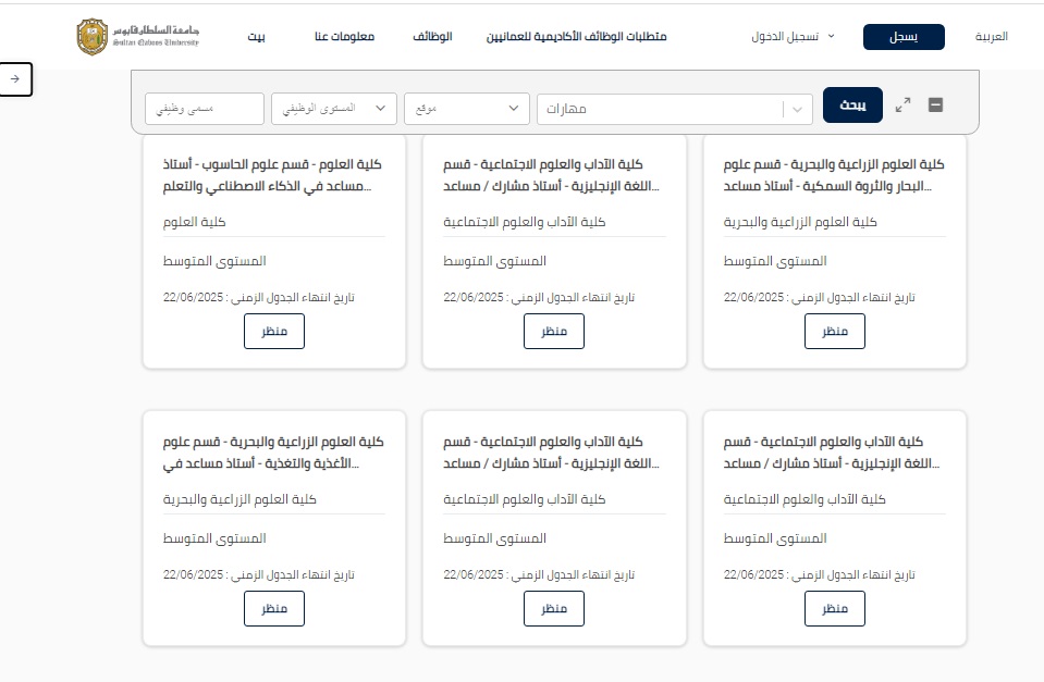 لمطالعة نص إعلان وظيفة جامعة السلطان قابوس والتقديم اضغط هنا