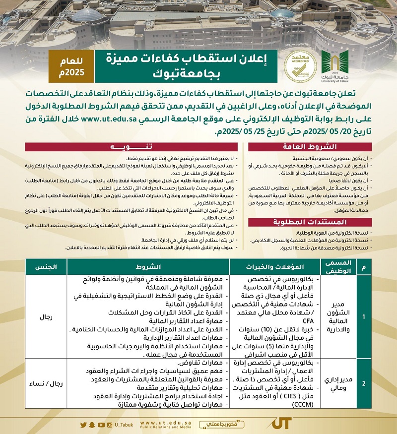 - أخبار وظائف جامعة تبوك اليوم