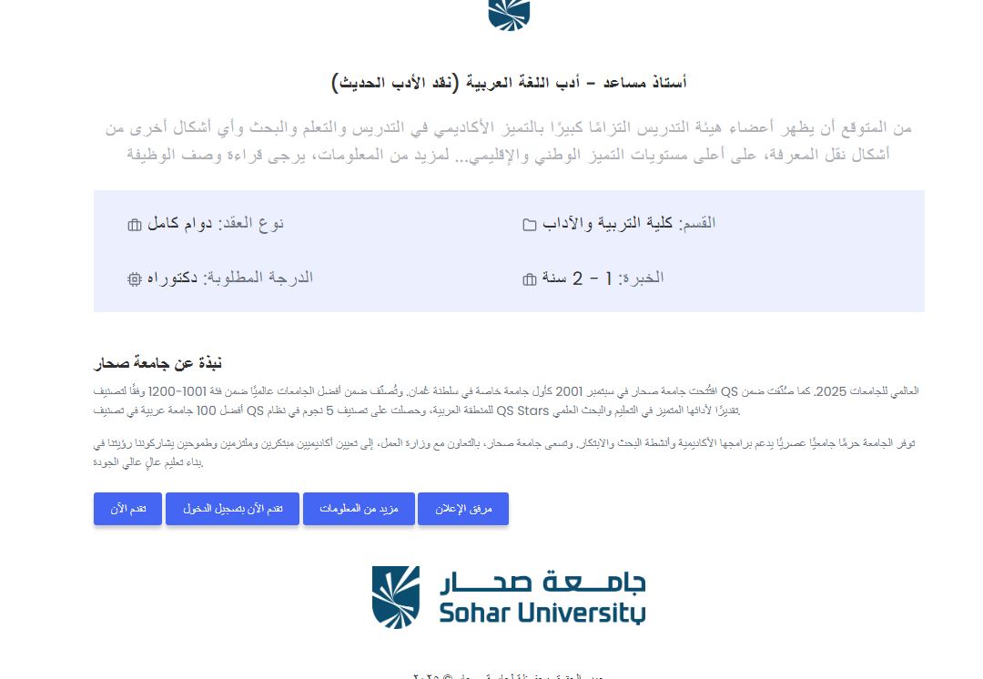 - أخبار وظائف جامعة صحار اليوم