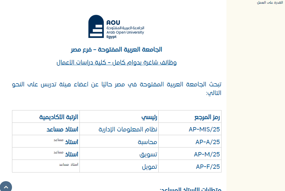وظيفة جامعة العربية المفتوحة