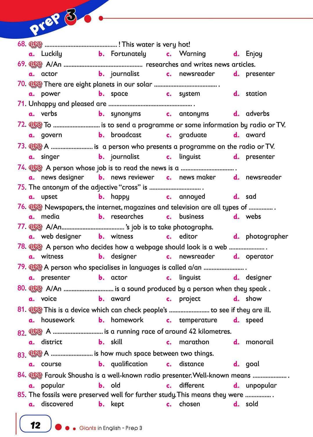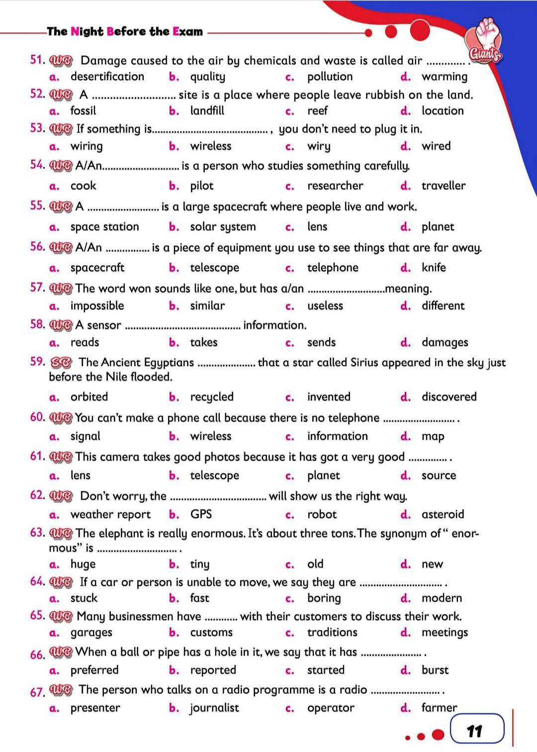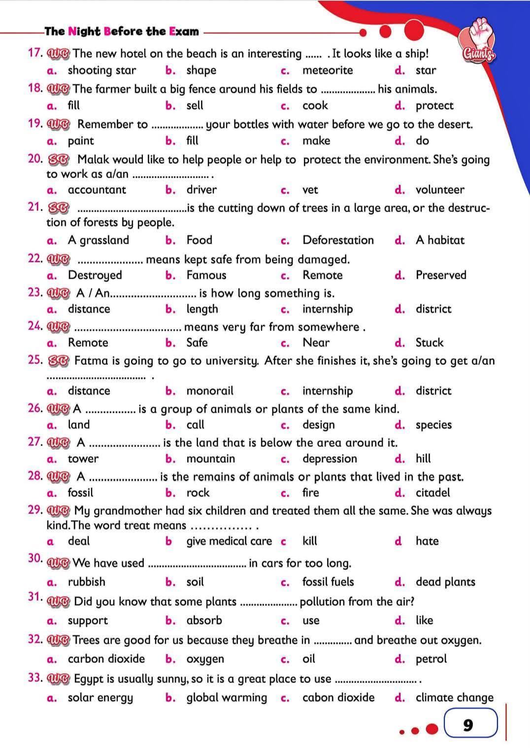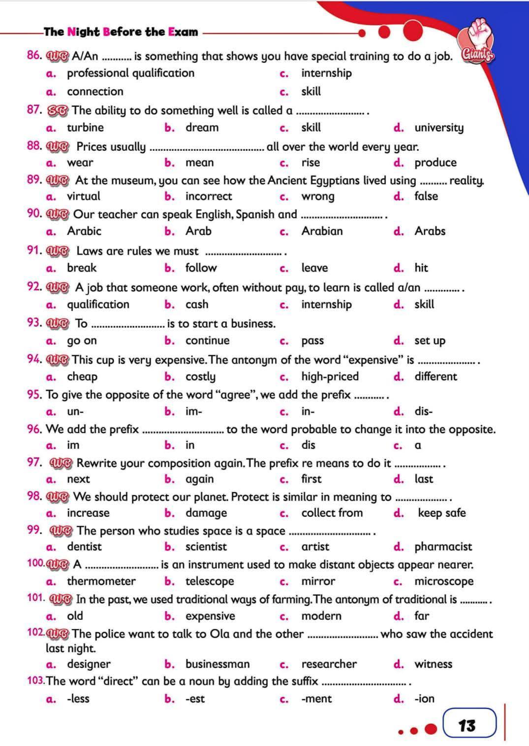 مراجعات نهائية.. ويستعرض موقع السبورة من خلال مراجعات نهائية، نشر 103 أسئلة من متعدد في اللغة الإنجليزية، مش هتقدر تفوتها من خلال مراجعات نهائيه، في موقع السبورة، وقسم درس خصوصي، الذي يضمن لك التفوق والتميز، بعد نشر مراجعات نهائيه، وتحميل مذكرة ليلة الامتحان في اللغة الانجليزية لطلاب وطالبات الصف الثالث الإعدادي 2025.