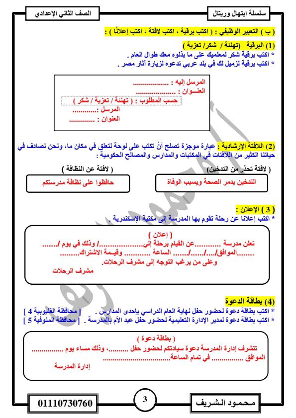 - مراجعات نهائيه الصف الثالث الإعدادي