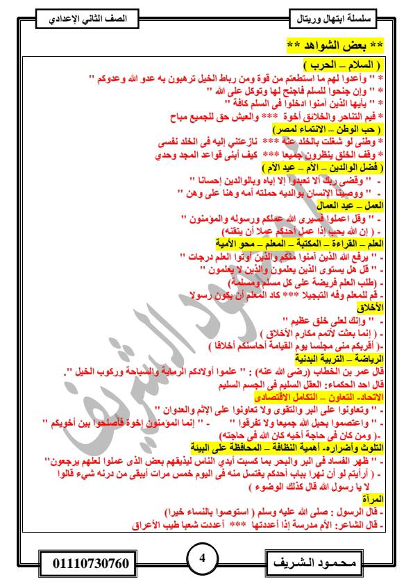 مراجعة ليلة امتحان التربية الاسلامية في 8 ورقات لـ الصف الثالث الاعدادي