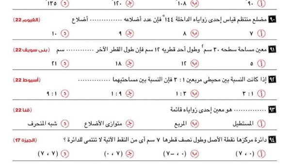 99 سؤالا من جميع المحافظات في الهندسة لـ الصف الثالث الاعدادي