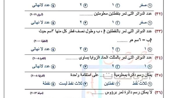 99 سؤالا من جميع المحافظات في الهندسة لـ الصف الثالث الاعدادي