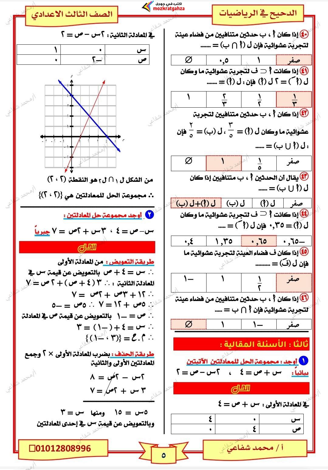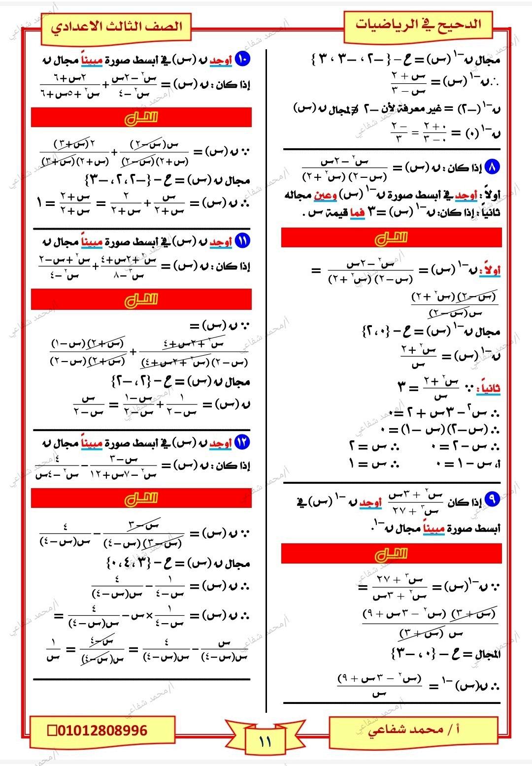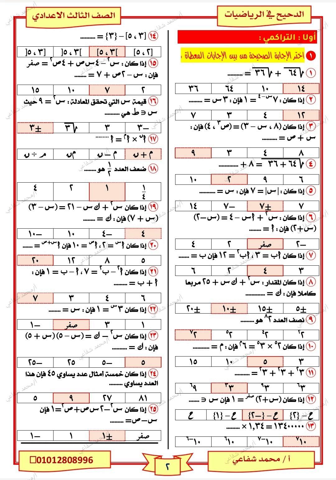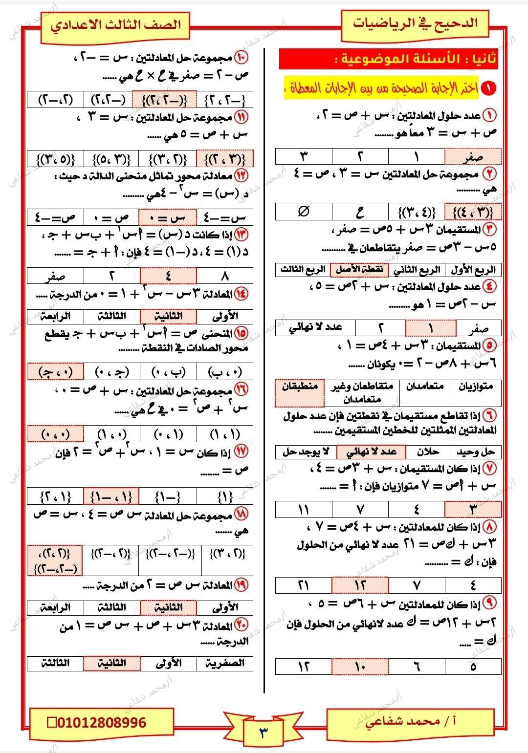 - الرياضيات الصف الثالث الإعدادي