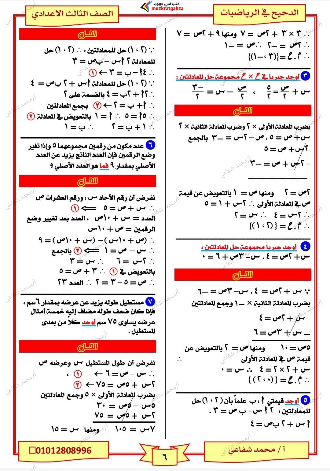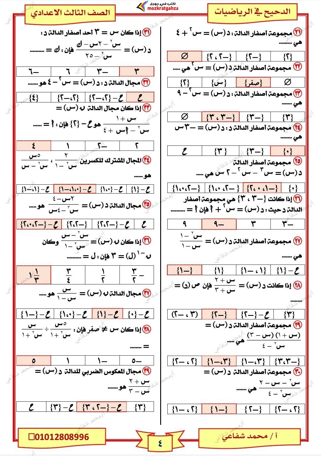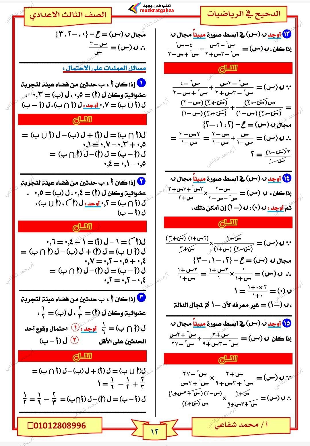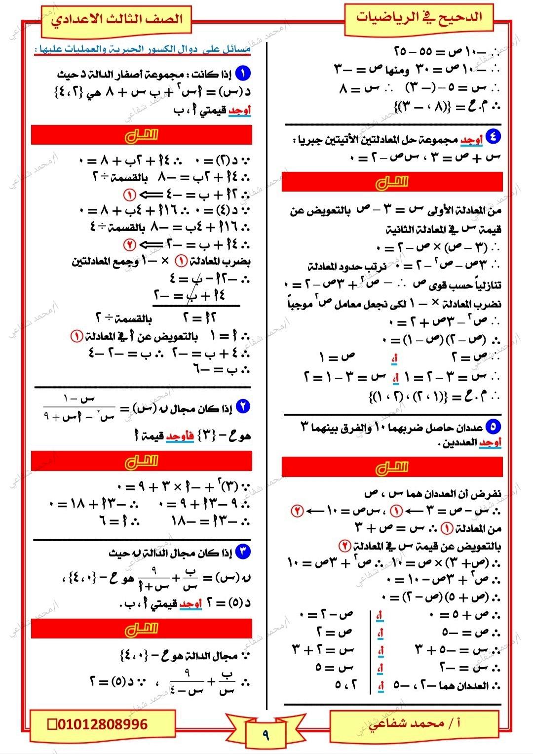 - الرياضيات مراجعات نهائية الصف الثالث الإعدادي