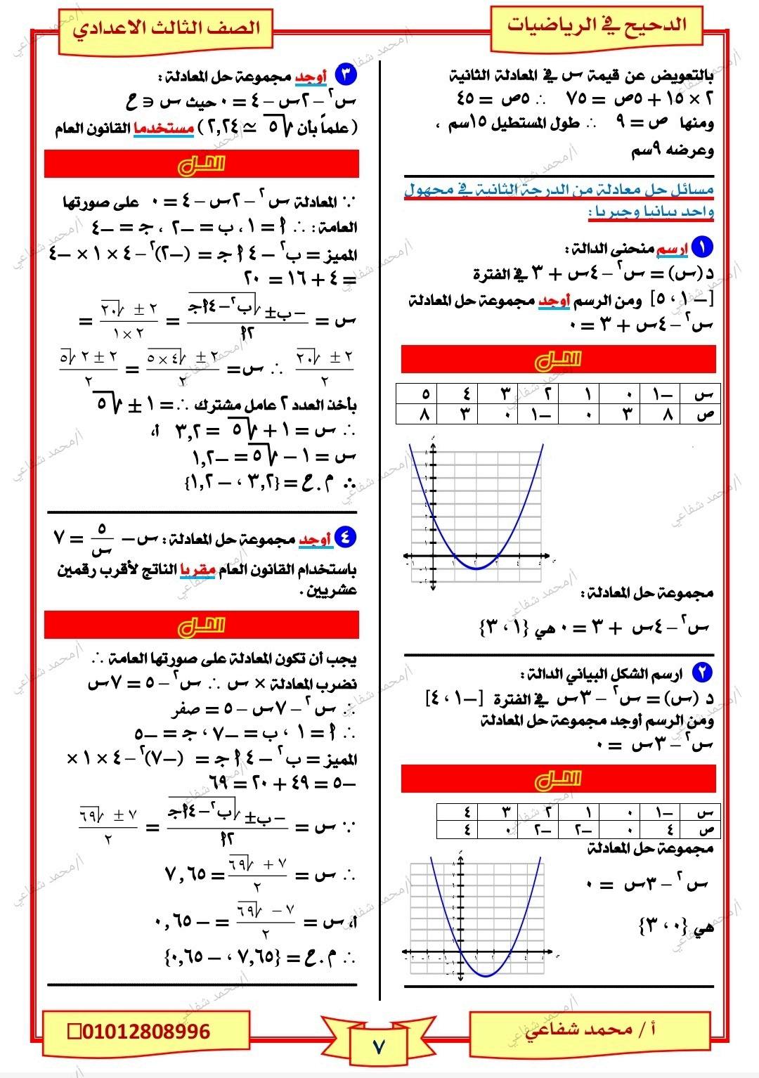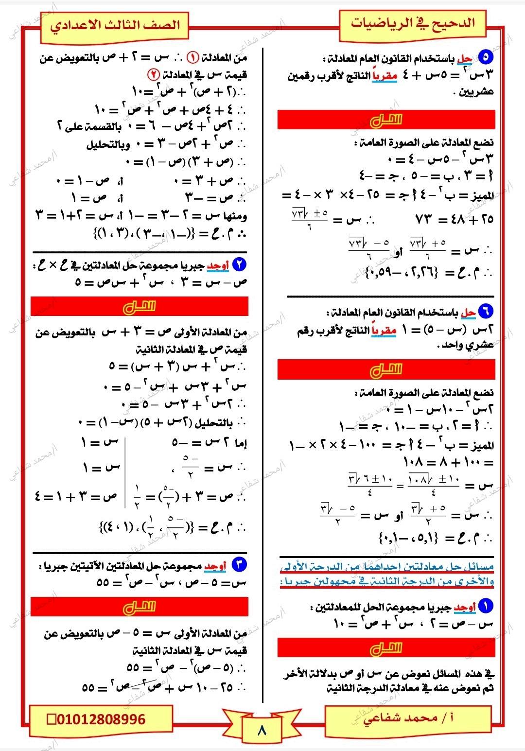- شرح دروس جبر ثالثة إعدادي