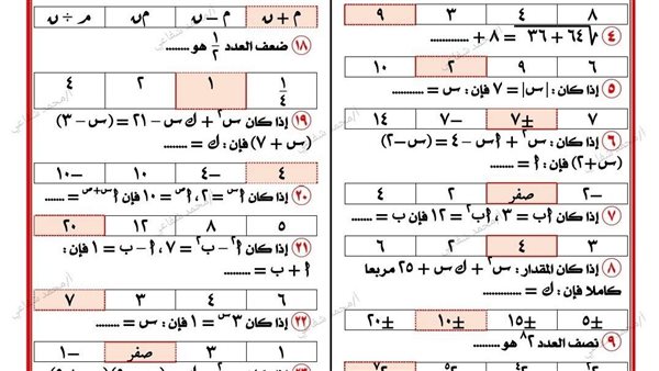 35 سؤالا بالاجابات من متعدد في الجبر لـ الصف الثالث الاعدادي