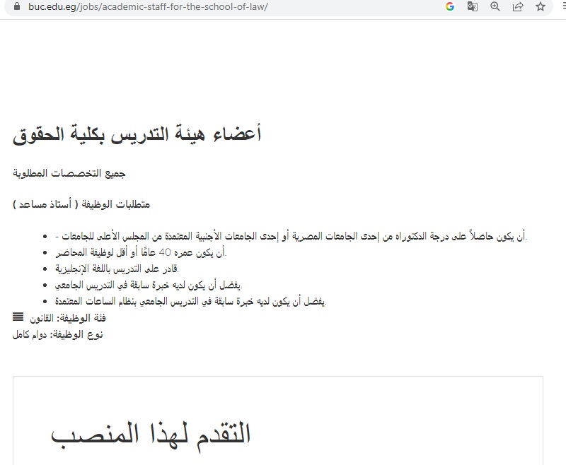 للمهتمين بالتقديم على وظائف أعضاء هيئة التدريس في كلية الحقوق بجامعة بدر بالقاهرة، يُرجى اتباع الخطوات التالية: