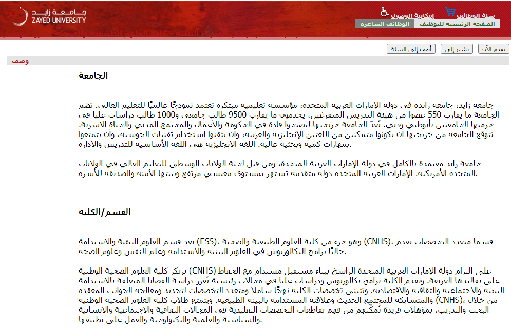 لمطالعة نص الإعلان الرسمي وظيفة جامعة زايد اضغط هنا
