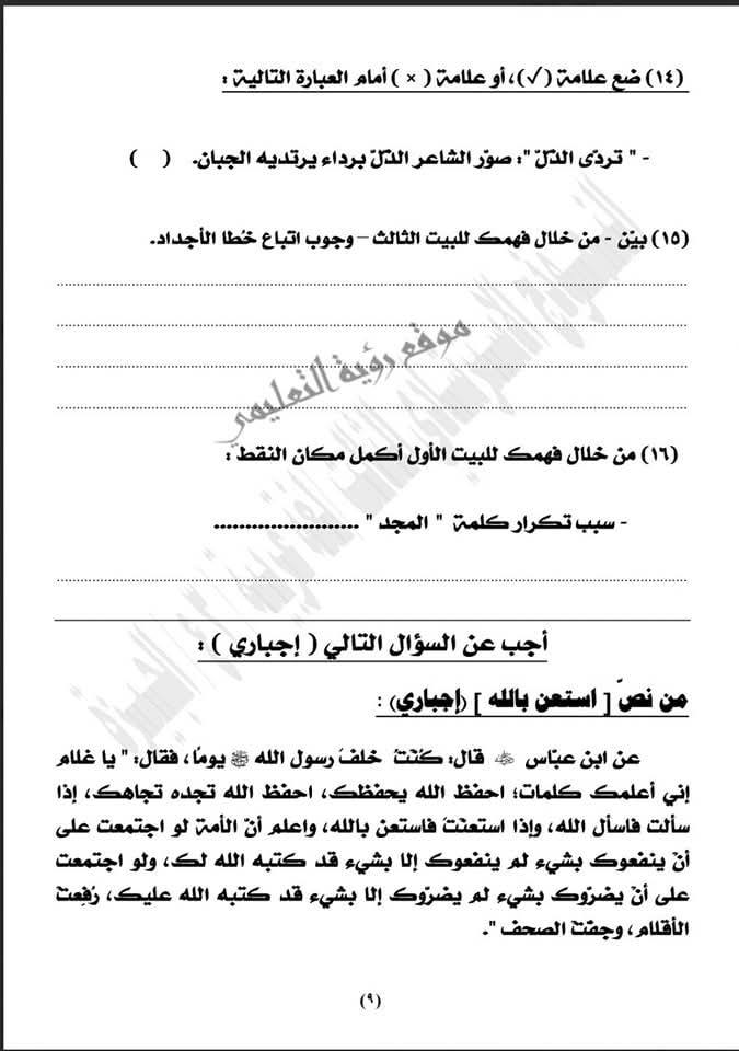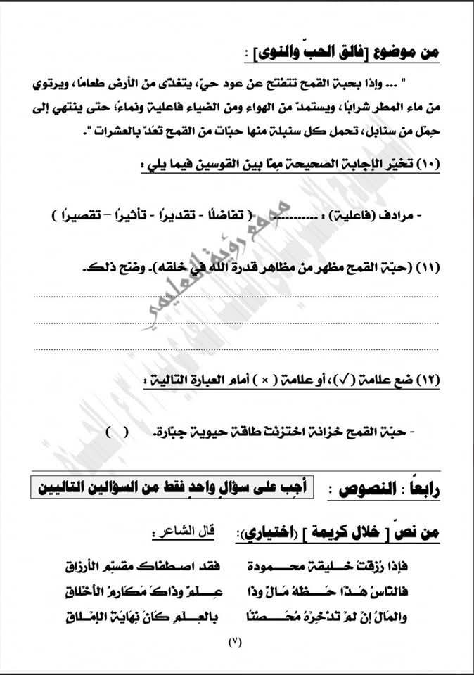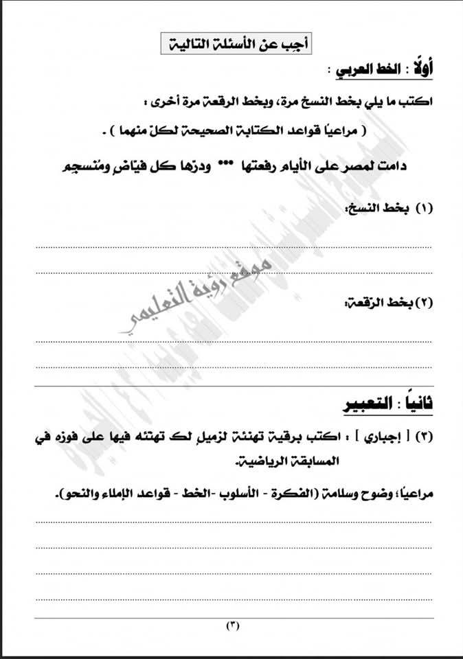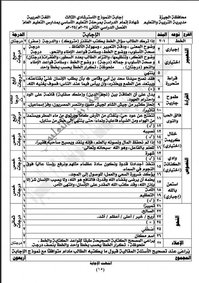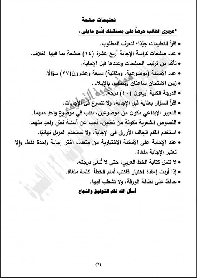 تنشر “السبورة” بوكليت الشهادة الإعدادية بالإجابات النموذجية وتوزيع الدرجات وإليكم النماذج: