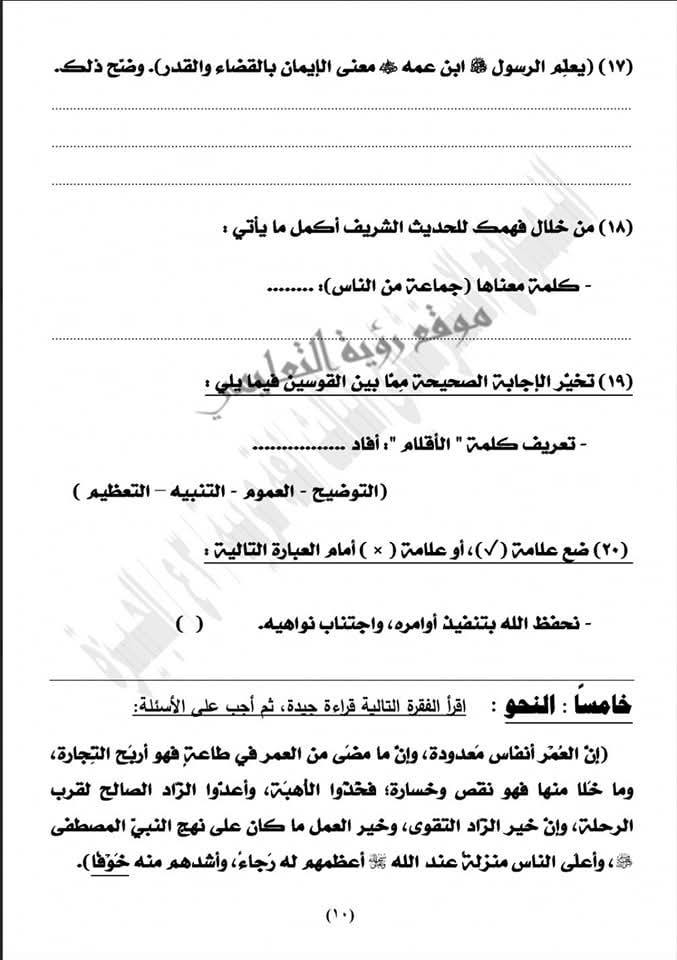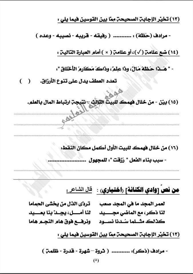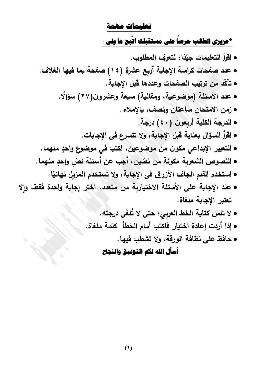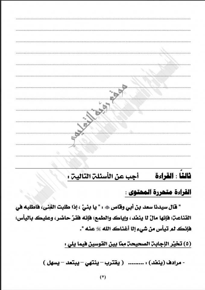 تنشر “السبورة” بوكليت الشهادة الإعدادية بالإجابات النموذجية وتوزيع الدرجات وإليكم النماذج: