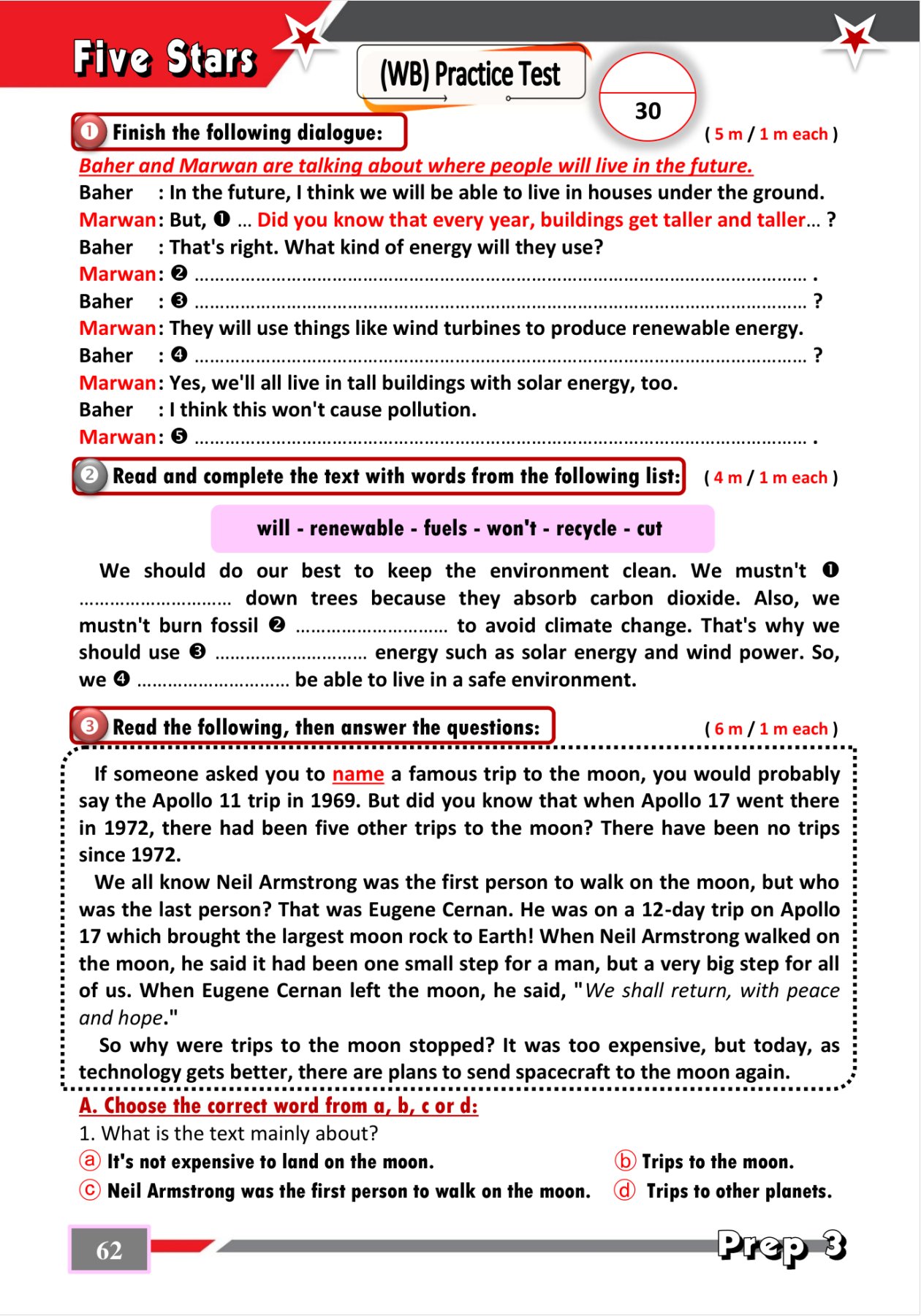 60 سؤالا بالاجابات في القراءة لـ الصف الثالث الاعدادي