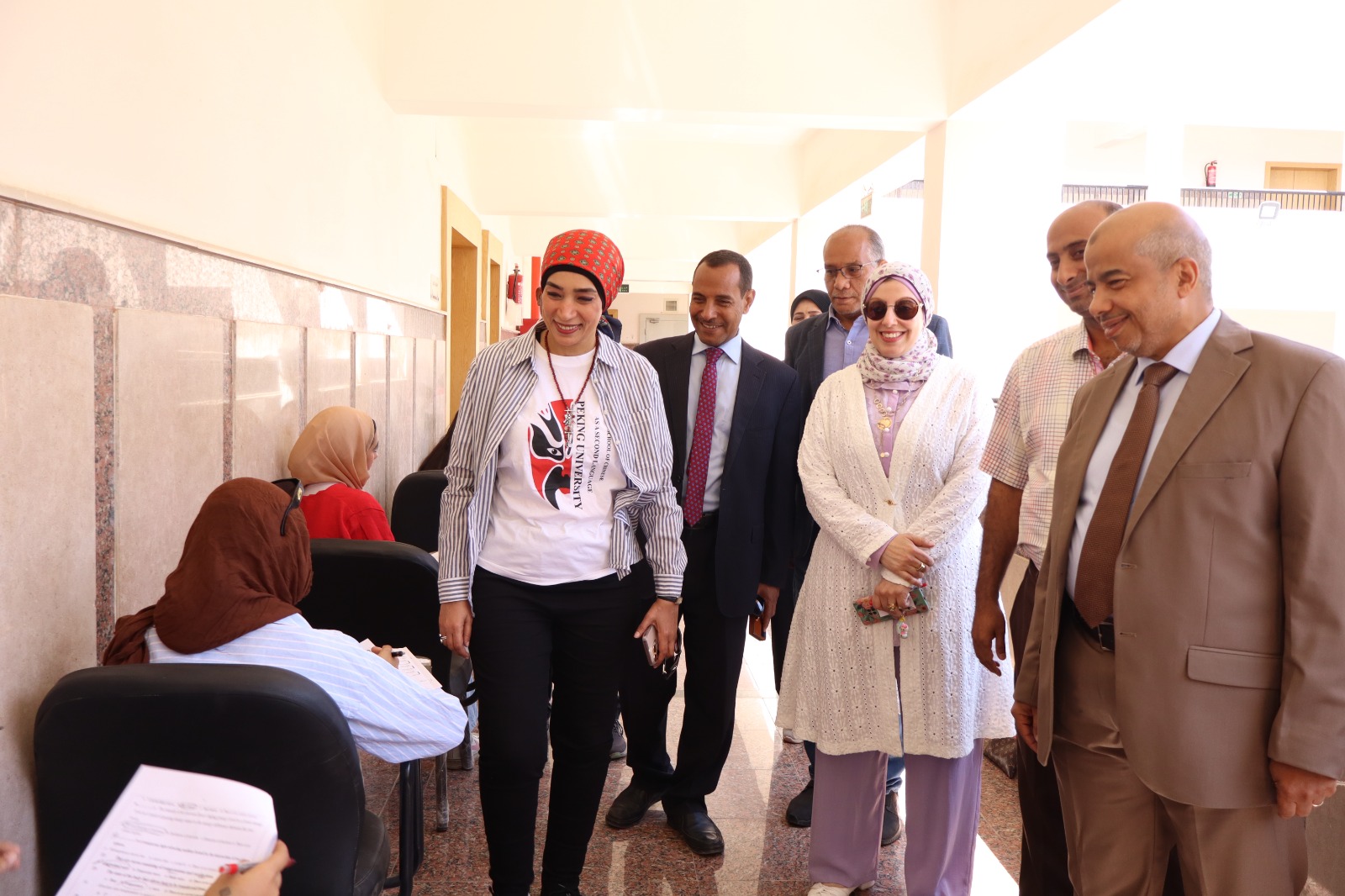 بدأت الجولة في كلية العلوم، حيث رافقها الدكتور محمد عبد الله عباس، عميد الكلية، إلى جانب وكلاء الكلية وعدد من أعضاء هيئة التدريس.