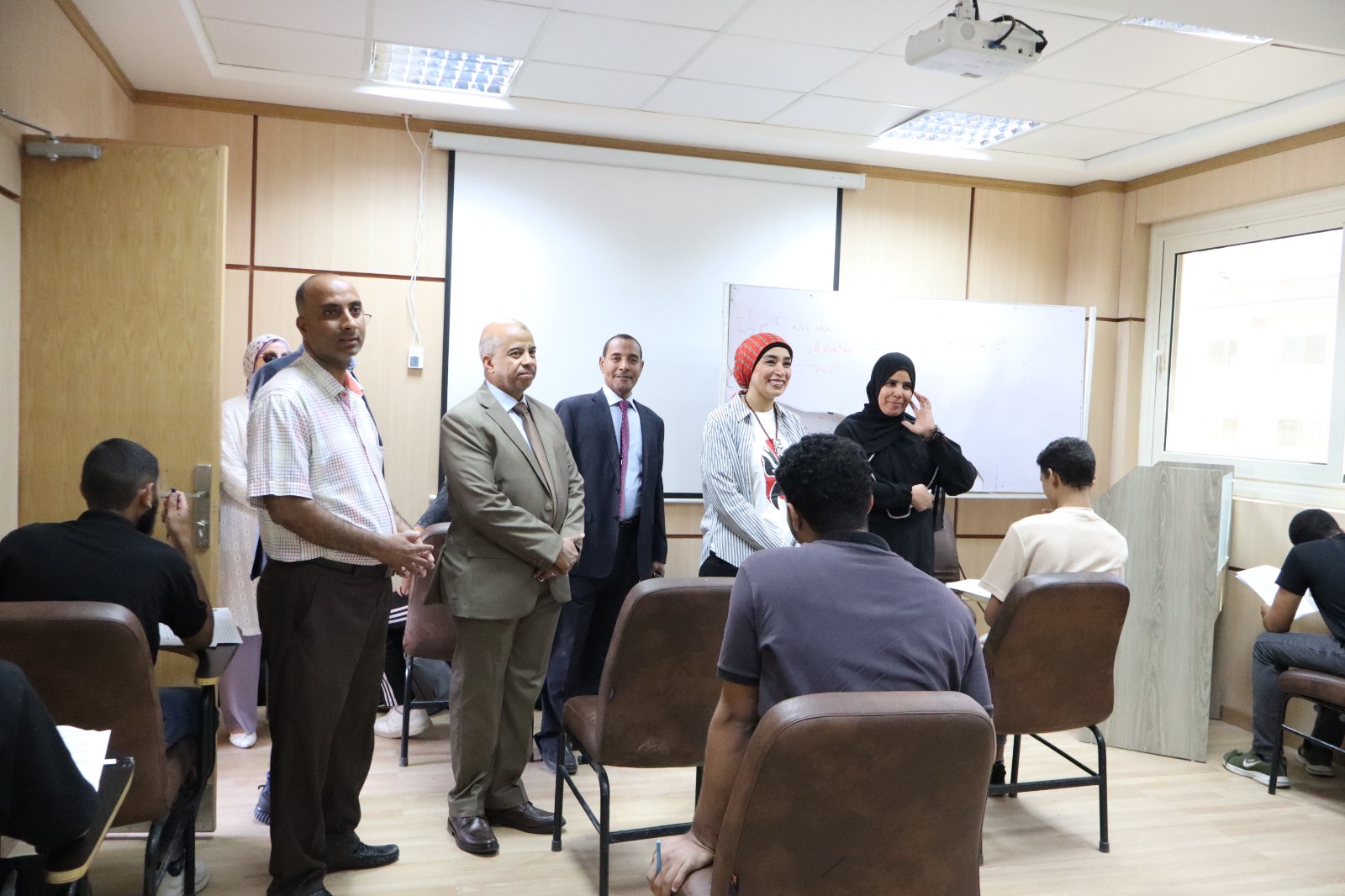 وخلال الجولة، تابعت رئيس الجامعة سير العمل داخل اللجان، واطمأنت على التزام الطلاب بالإجراءات المتبعة، وتحدثت بشكل مباشر مع عدد منهم للاستماع إلى آرائهم بشأن تنظيم الامتحانات، ومدى وضوح الأسئلة.
