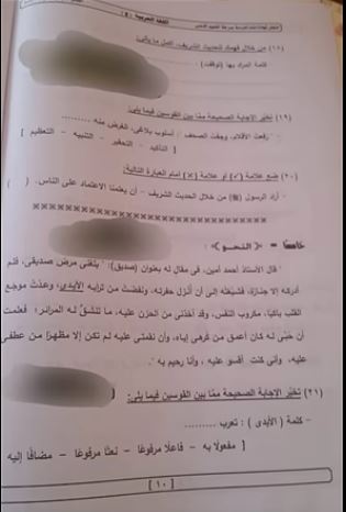 - حلول امتحانات اللغة العربية الصف الثالث الإعدادي محافظة الجيزة
