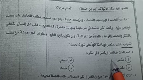 - امتحان اللغة العربية محافظة الشرقية