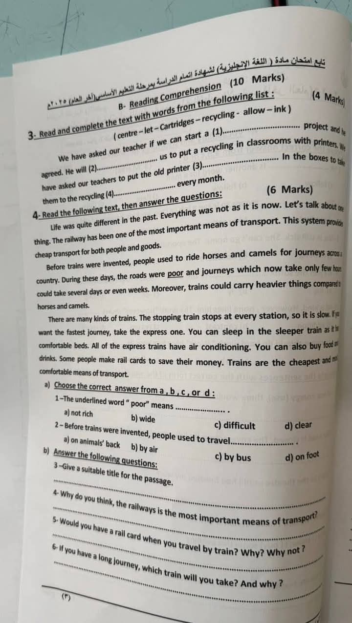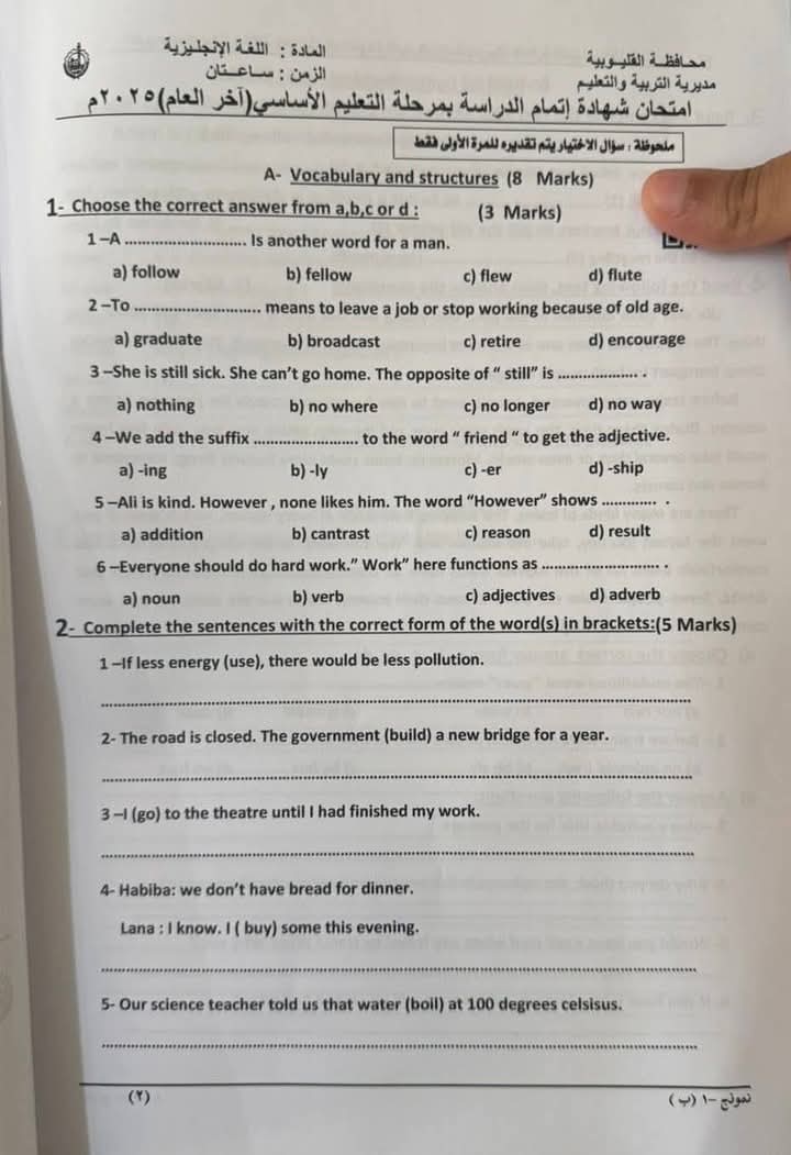 - امتحان اللغة الانجليزية الإعدادية 2025