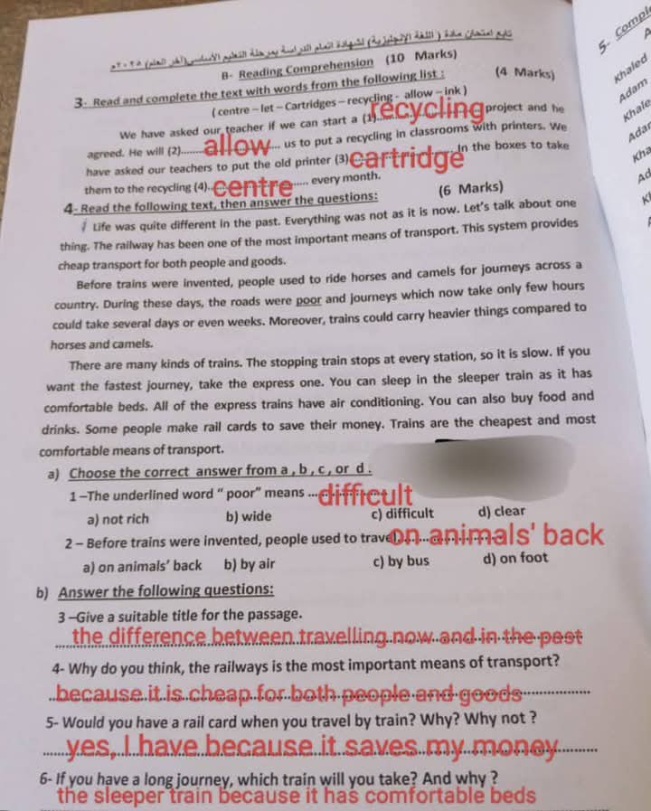 - تصحيح امتحان اللغة الانجليزية الإعدادية