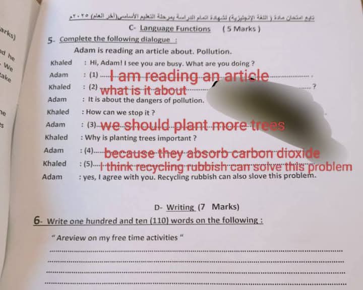 - امتحان اللغة الانجليزية محافظة القليوبية