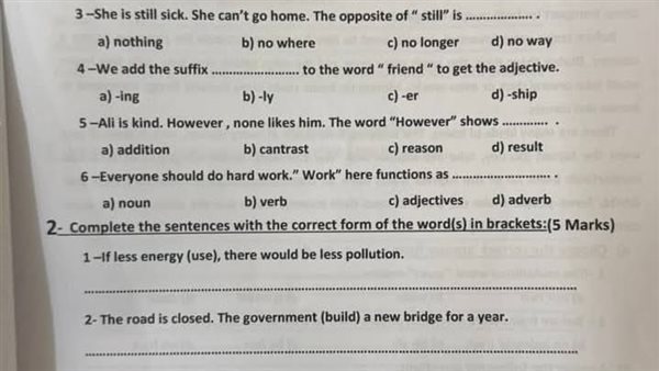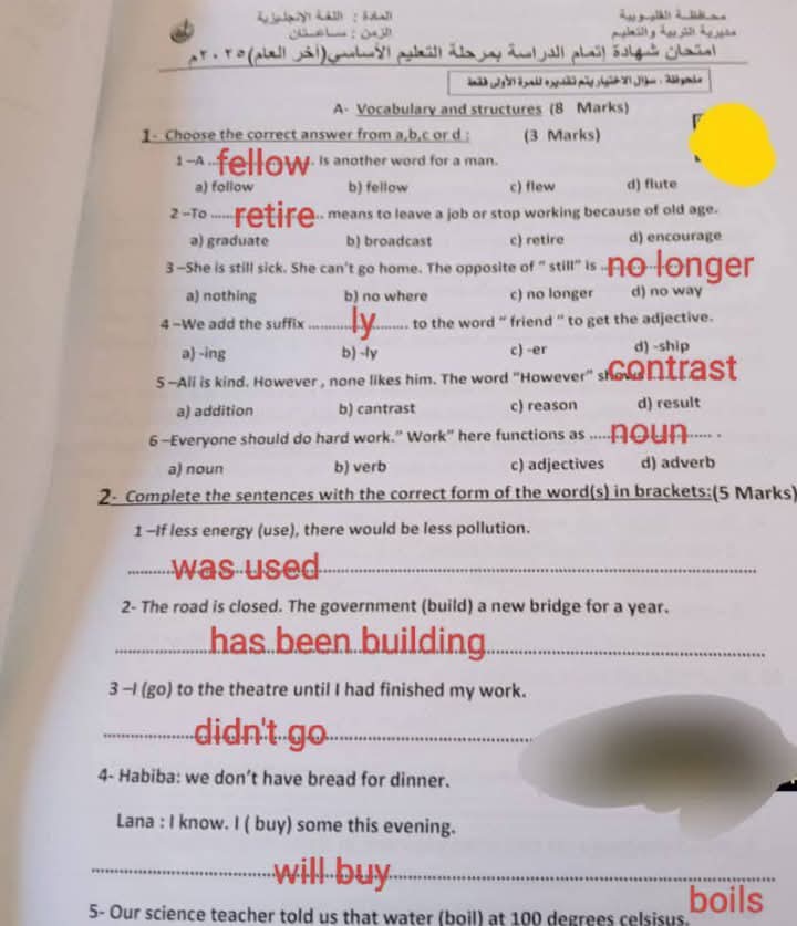 - أسئلة اللغة الانجليزية للشهادة الإعدادية 2025