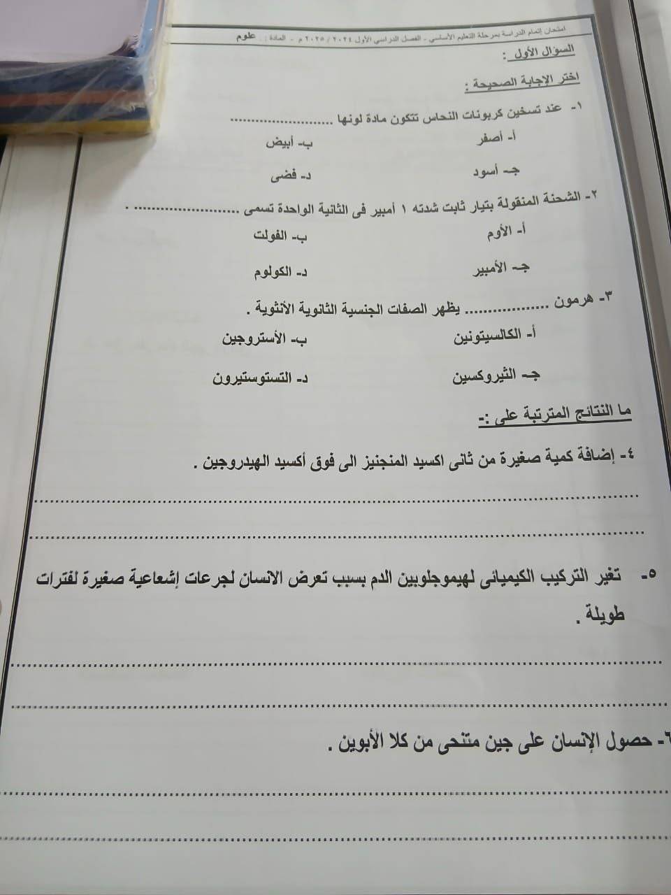 - بالاجابات امتحان العلوم القاهرة