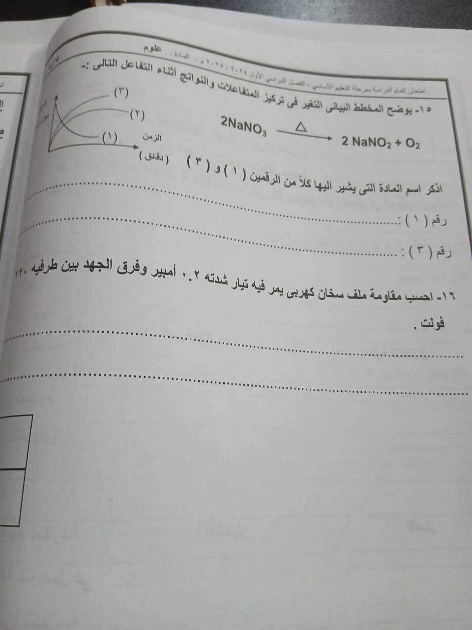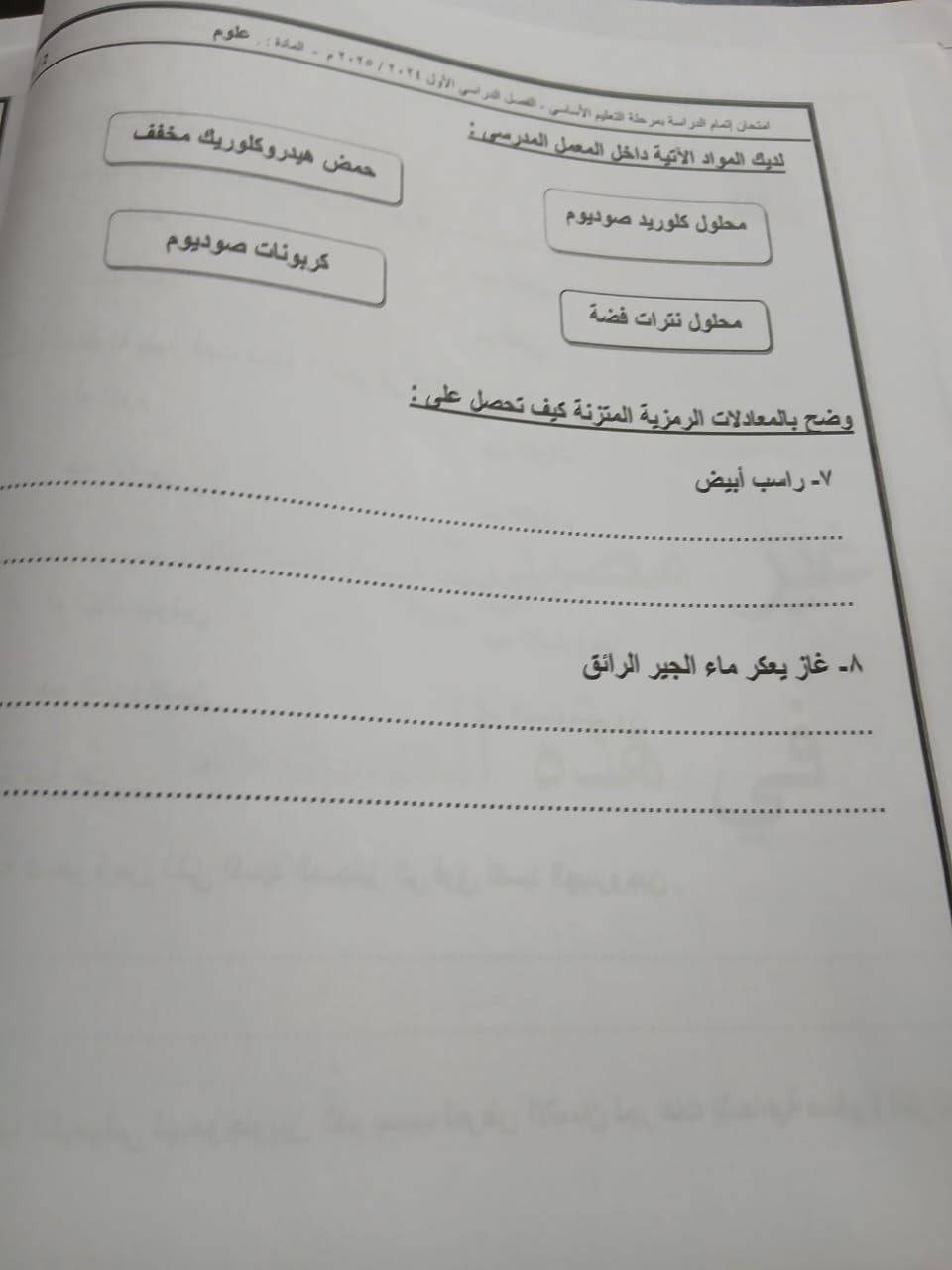 - حل امتحان العلوم الصف الثالث الاعدادي