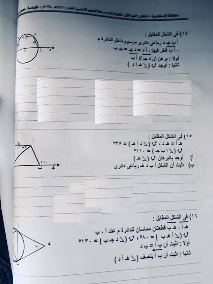 - حلول امتحانات الهندسة الصف الثالث الإعدادي محافظة الاسكندرية