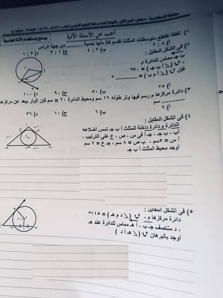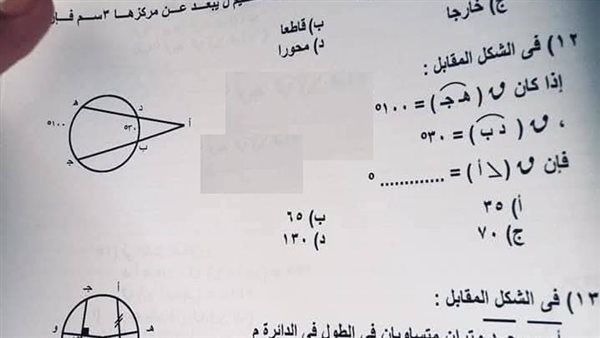 - حل امتحان الهندسة الصف الثالث الاعدادي