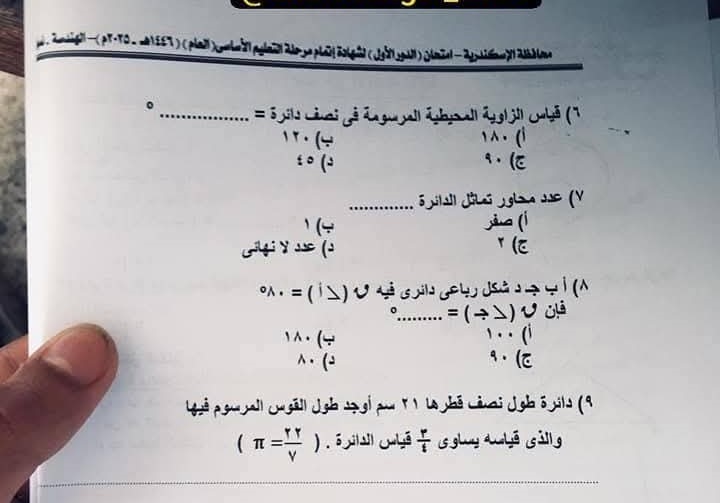 حل امتحان الهندسة الصف الثالث الاعدادي.. أدى طلاب وطالبات الصف الثالث الاعدادي لمحافظة الاسكندرية، امتحان آخر العام في مادة الهندسة للترم الثاني للعام الدراسي 2024-2025، اليوم الثلاثاء الموافق 3-6-2025.