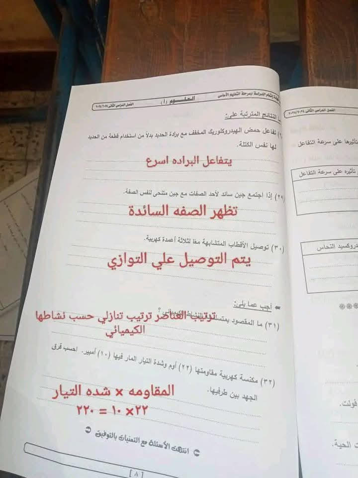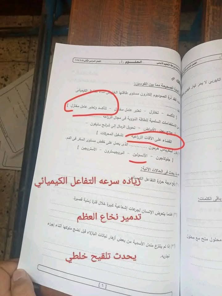 - نماذج إجابات امتحانات العلوم 3 إعدادي