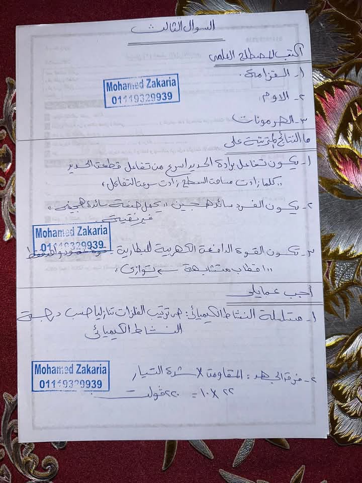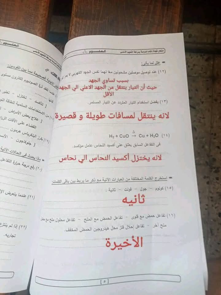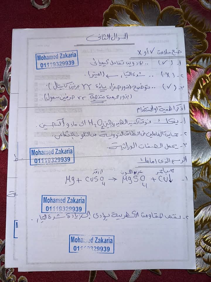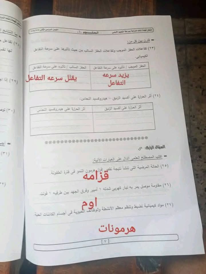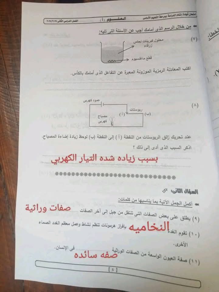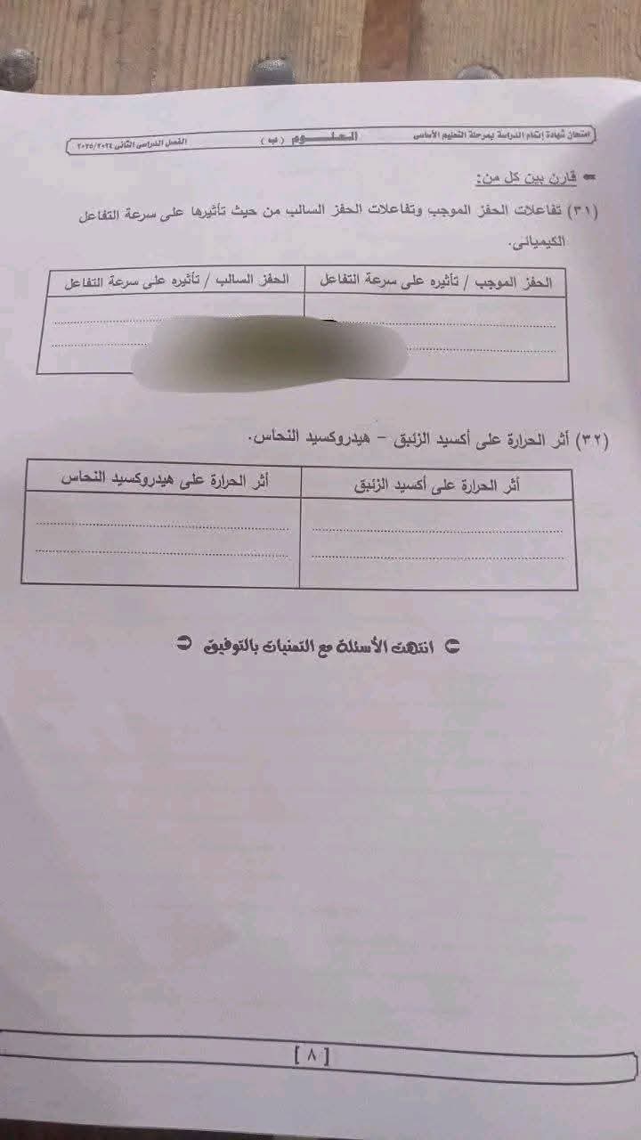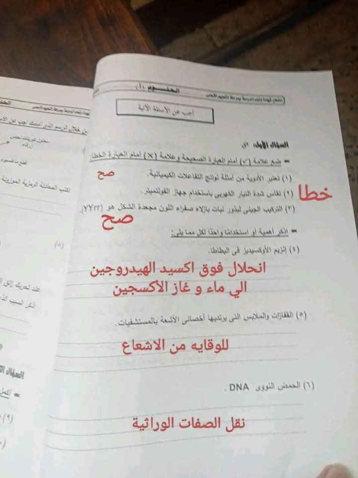 - حل امتحان العلوم الصف الثالث الاعدادي