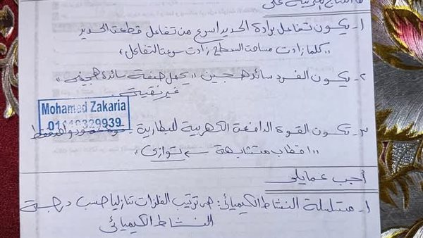 إجابات أسئلة امتحان العلوم الصف الثالث الاعدادي.. وأدى طلاب الشهادة الإعدادية بمحافظة الجيزة صباح اليوم الثلاثاء امتحان مادة العلوم، وسط إجراءات تنظيمية مشددة لضمان سير الامتحانات في أجواء منضبطة وآمنة. وقد عبّر عدد من الطلاب عن ارتياحهم لمستوى الامتحان، مؤكدين أن الأسئلة جاءت في مستوى الطالب المتوسط وشاملة لأجزاء المنهج.