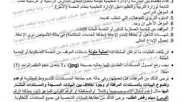 - المستندات المطلوبة لمسابقة التربية والتعليم