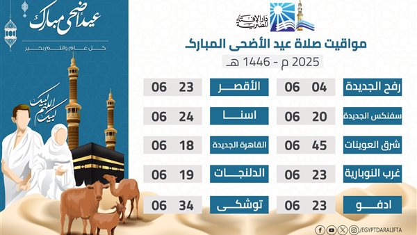 - موعد صلاة عيد الأضحى 2025 في مصر
