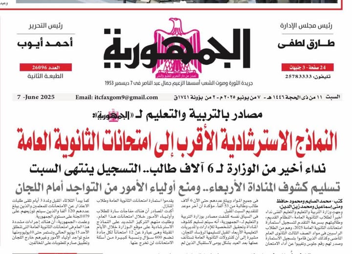 التعليم تهدى أسئلة امتحانات الثانوية العامة 2025 للطلاب قبل انطلاقها..وتحذر 6 آلاف طالب