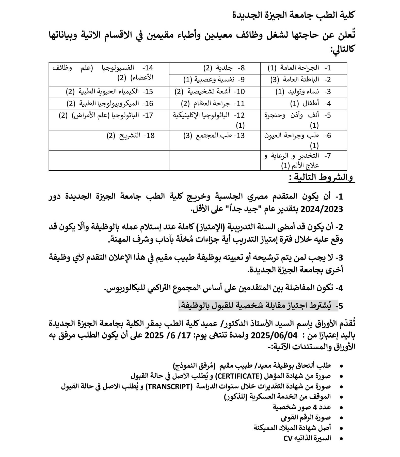 - الشروط المطلوبة في وظائف جامعة الجيزة الجديدة