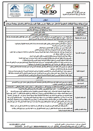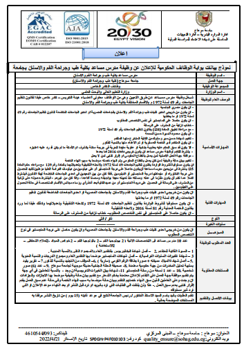 إعلان وظيفة جامعة سوهاج