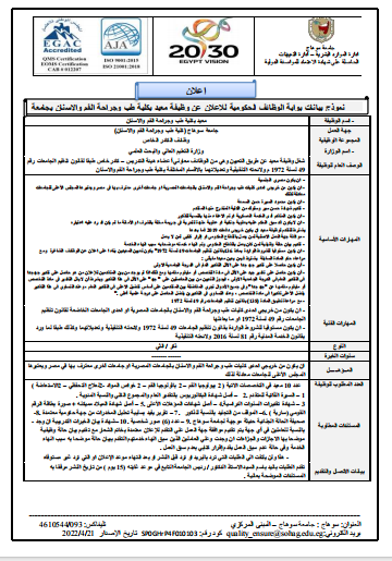 الوظائف المطلوبة بجامعة سوهاج