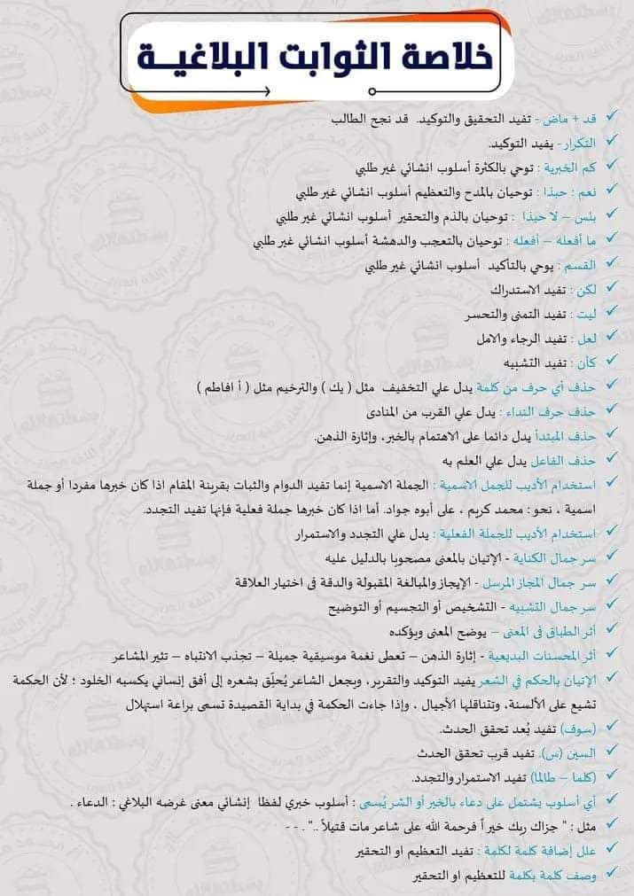 - جميع الثوابت البلاغية في 10 ورقات اللغة العربية الثانوية العامة