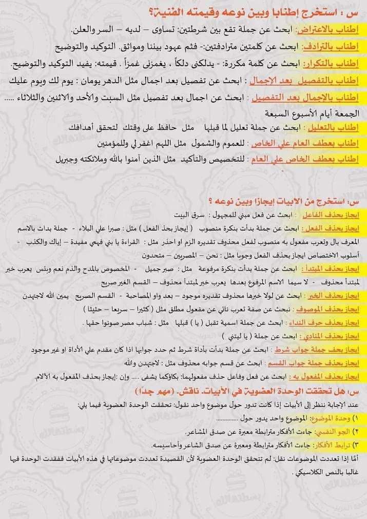 - مراجعات نهائيه امتحان اللغة العربية ثانوية عامة