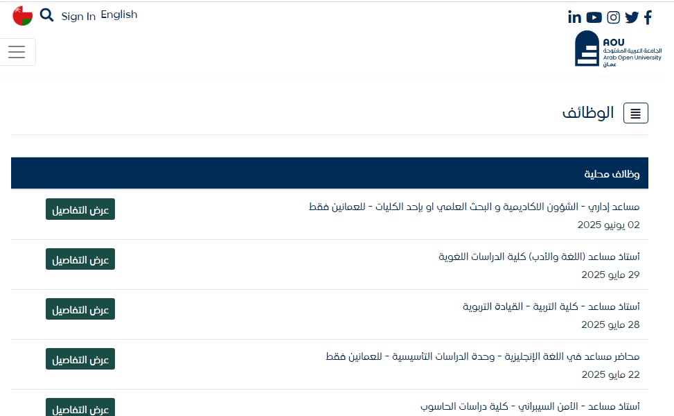 لمطالعة نص إعلان وظيفة جامعة العربية المفتوحة فرع سلطنة عمان والتقديم عبر الموقع الرسمي سجل هنا