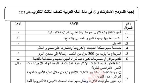 الثانوية العامة 2025.. بالاجابات حل النماذج الاسترشادية في اللغة العربية من 6 الى 10 في مادة اللغة العربية الثانوية العامة، للعام الدراسي الجاري 2024-2025، في مراجعات نهائيه وتحميل بالاجابات النماذج السبعة في اللغة العربية الثانوية العامة، تضمن لك التفوق لـ الثانوية العامة 2025، حيث يواصل موقع السبورة نشر مراجعة ليلة الامتحان من خلال تحميل حل النماذج الاسترشادية في اللغة العربية من 6 الى 10 في اللغة العربية الثانوية العامة تضمن لك التفوق لـ الصف الثالث الثانوي، من خلال مراجعات نهائيه، واستعراض جميع اجابات النماذج السبعة في اللغة العربية الثانوية العامة تضمن لك التفوق لـ طلاب الثانوية العامة 2025، عن طريق نشر العديد من الامتحانات، لطلاب وطالبات الصف الثالث الثانوي، في مراجعات نهائيه، لن يخرج عنها امتحان آخر العام، ومن خلال متابعة مراجعات نهائيه أعدها خبراء المادة في وزارة التربية والتعليم.