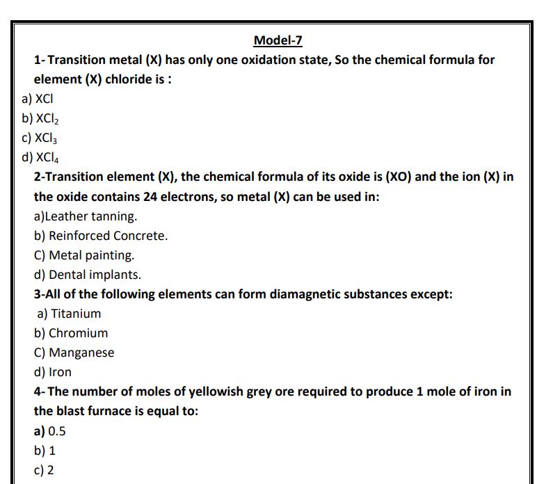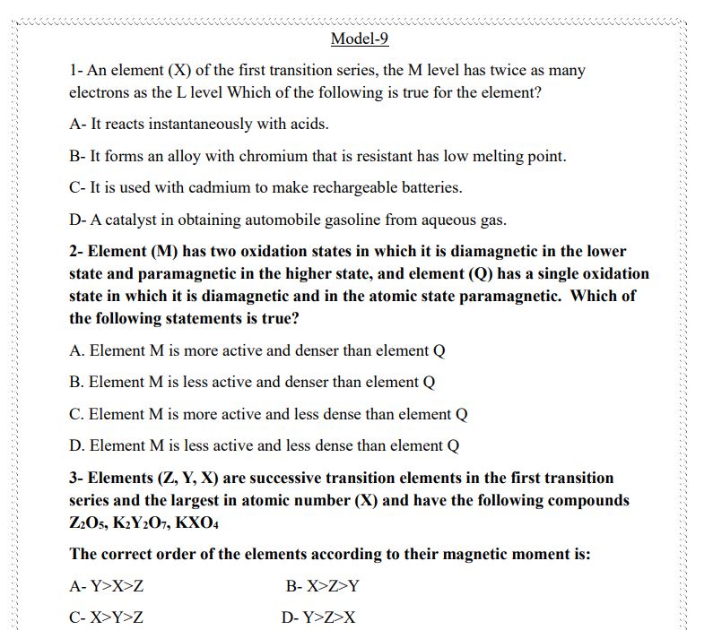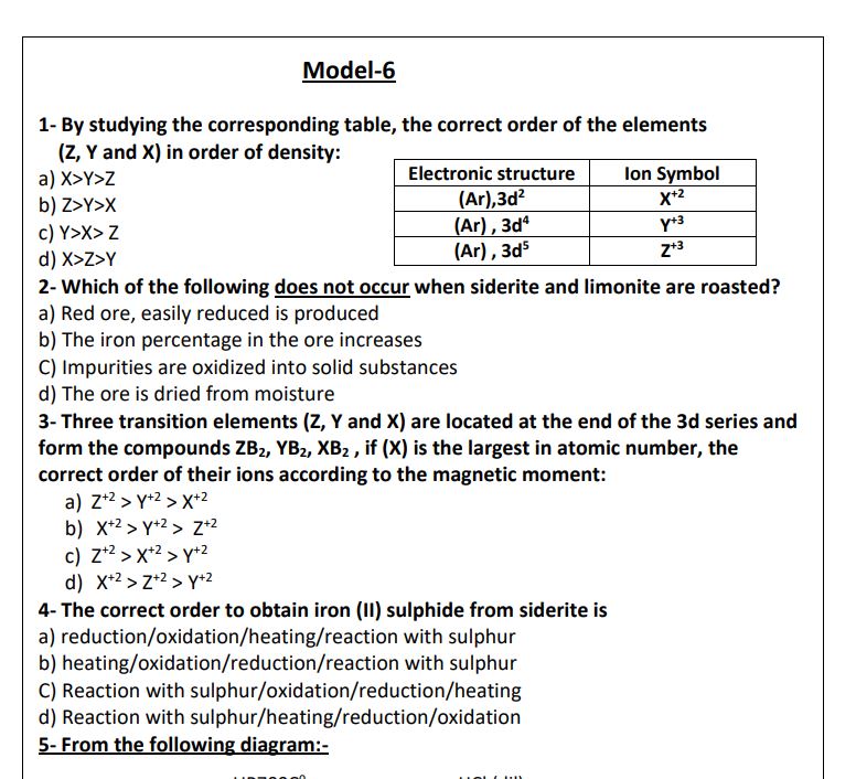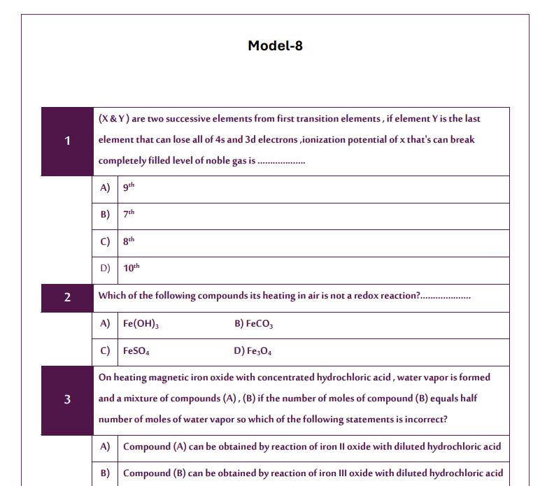 الثانوية العامة 2025.. بالاجابات حل النماذج الاسترشادية من 6 الى 10 في الكيمياء