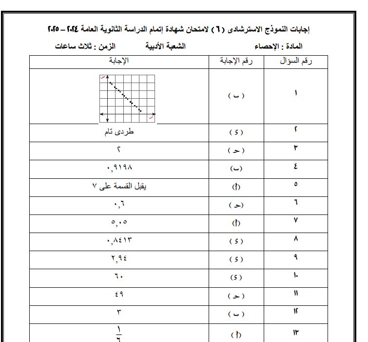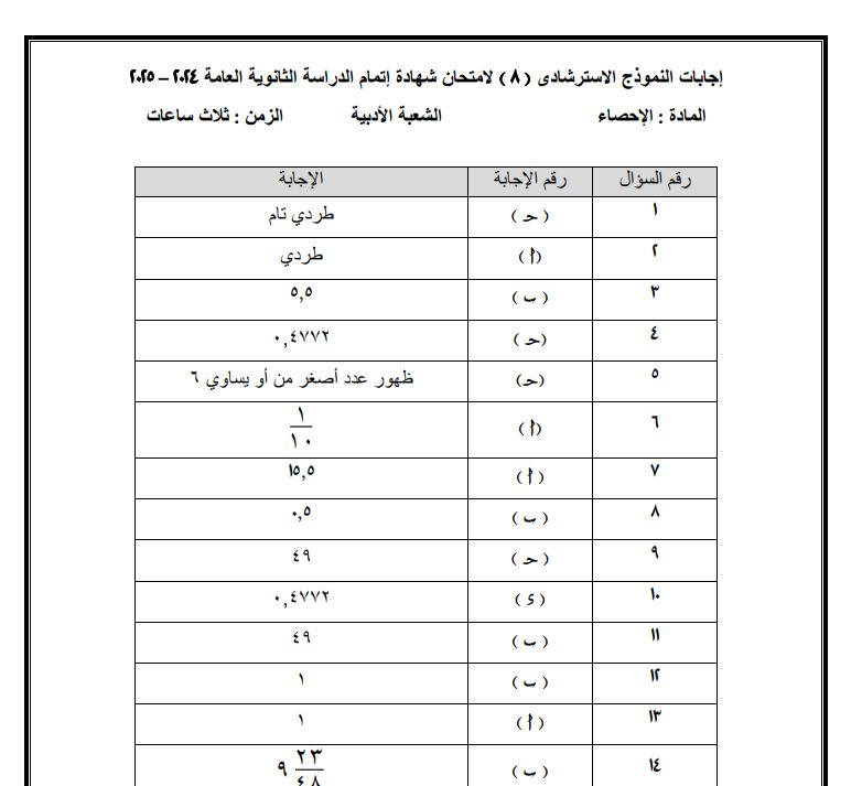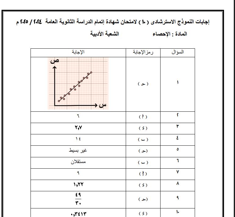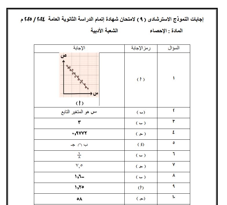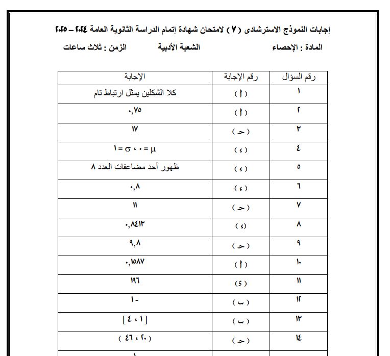 تنشر وزارة التربية والتعليم والتعليم الفني عبر موقعها على شبكة الانترنت، حل النماذج الاسترشادية من 6 الى 10 في الاحصاء لطلاب وطالبات الثانوية العامة 2025، حيث يعد هذا النموذج محاكاة لامتحان آخر العام لطلاب الثانوية العامة 2025.