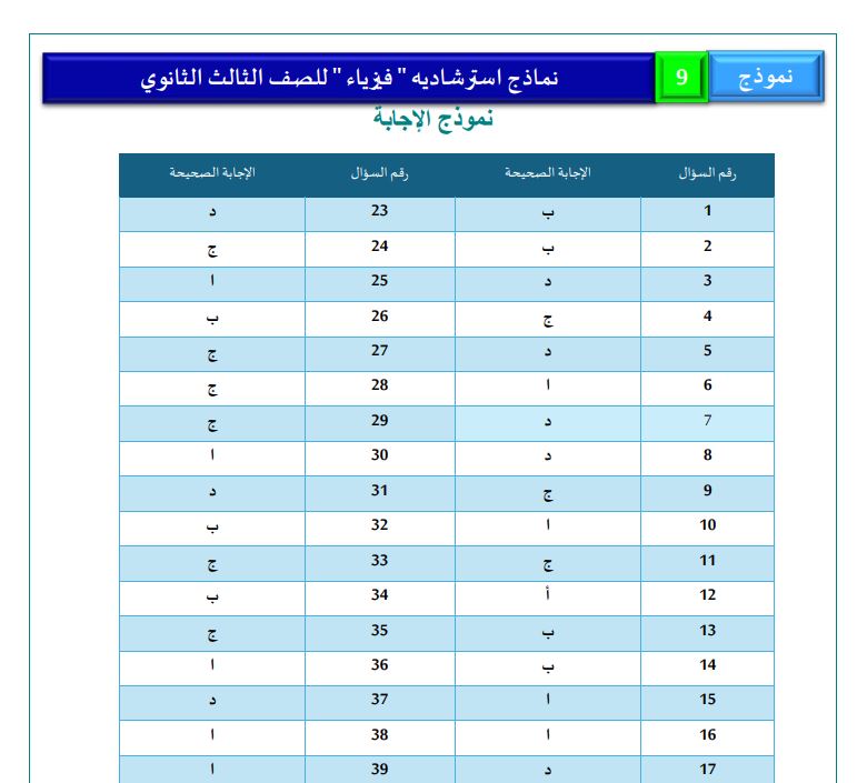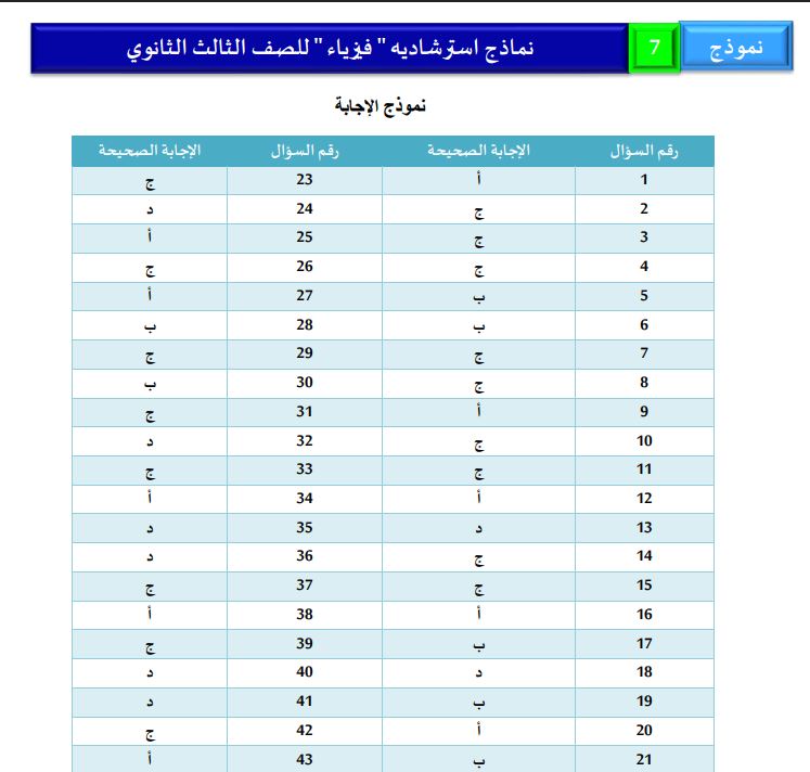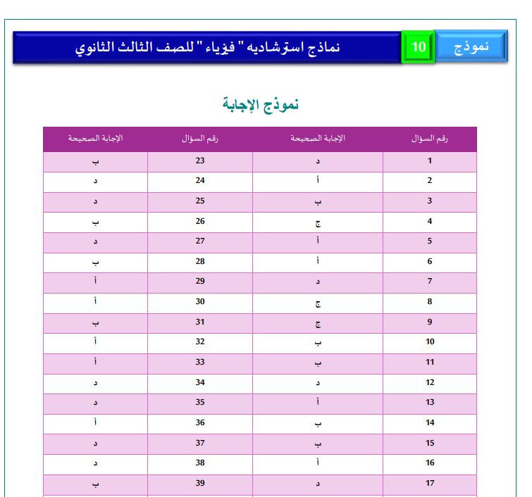 - بالاجابات النماذج الاسترشادية من 6 الى 10 في الفيزياء لـ الثانوية العامة