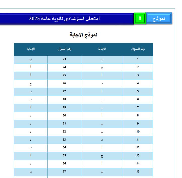 حل النماذج الاسترشادية في اللغة العربية من 6 الى 10 لـ الثانوية العامة 2025