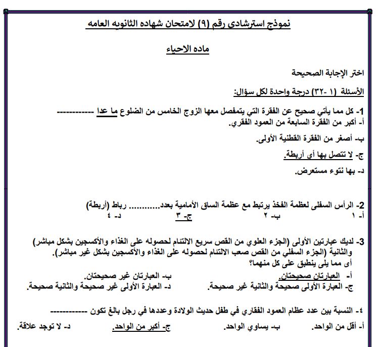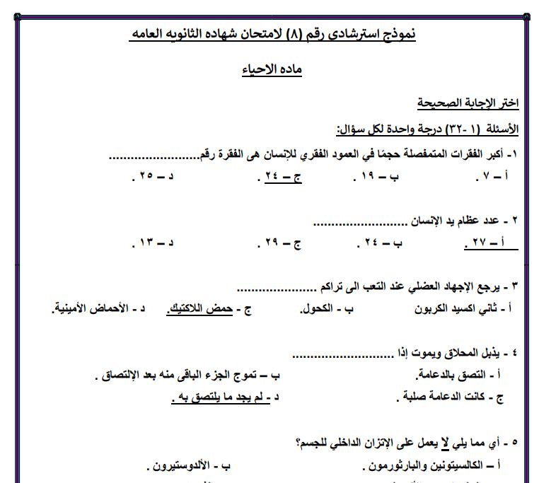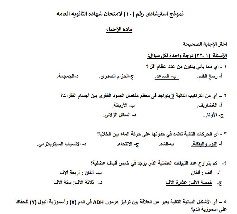 الثانوية العامة 2025.. بالاجابات النماذج الاسترشادية من 6 الى 10 في الاحياء